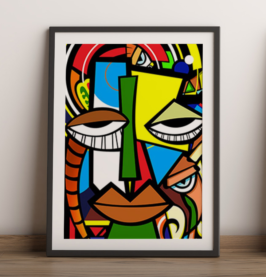 •Design: A vibrant blend of geometric shapes and bold colors portraying an abstract African face — striking, expressive, and unique.